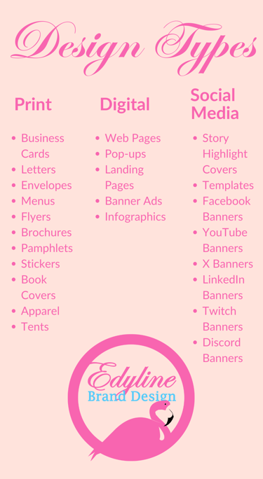 Hi, my name's Edyline Espaillat and I create dreams for people through branding. Designing was something I've wanted to do ever since I was seven years old. The only thing is, I didn't know what it was during that time. But I used to love taking the train with my mom and observing all the advertisements around me and wondering how they were able to make them. It blew my mind and I remember wanting to learn how to make crazy pictures for companies one day. I didn't learn what it was until I was 13 when I had to complete a project for my algebra class on money. I had to choose a career I was interested in, calculate how much I would earn per year and manage my monthly living expenses. Naturally, I founded this career and fell in love with it ever since.
